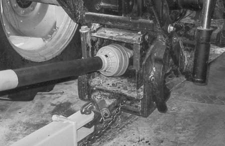 Attach the safety chain around the drawbar